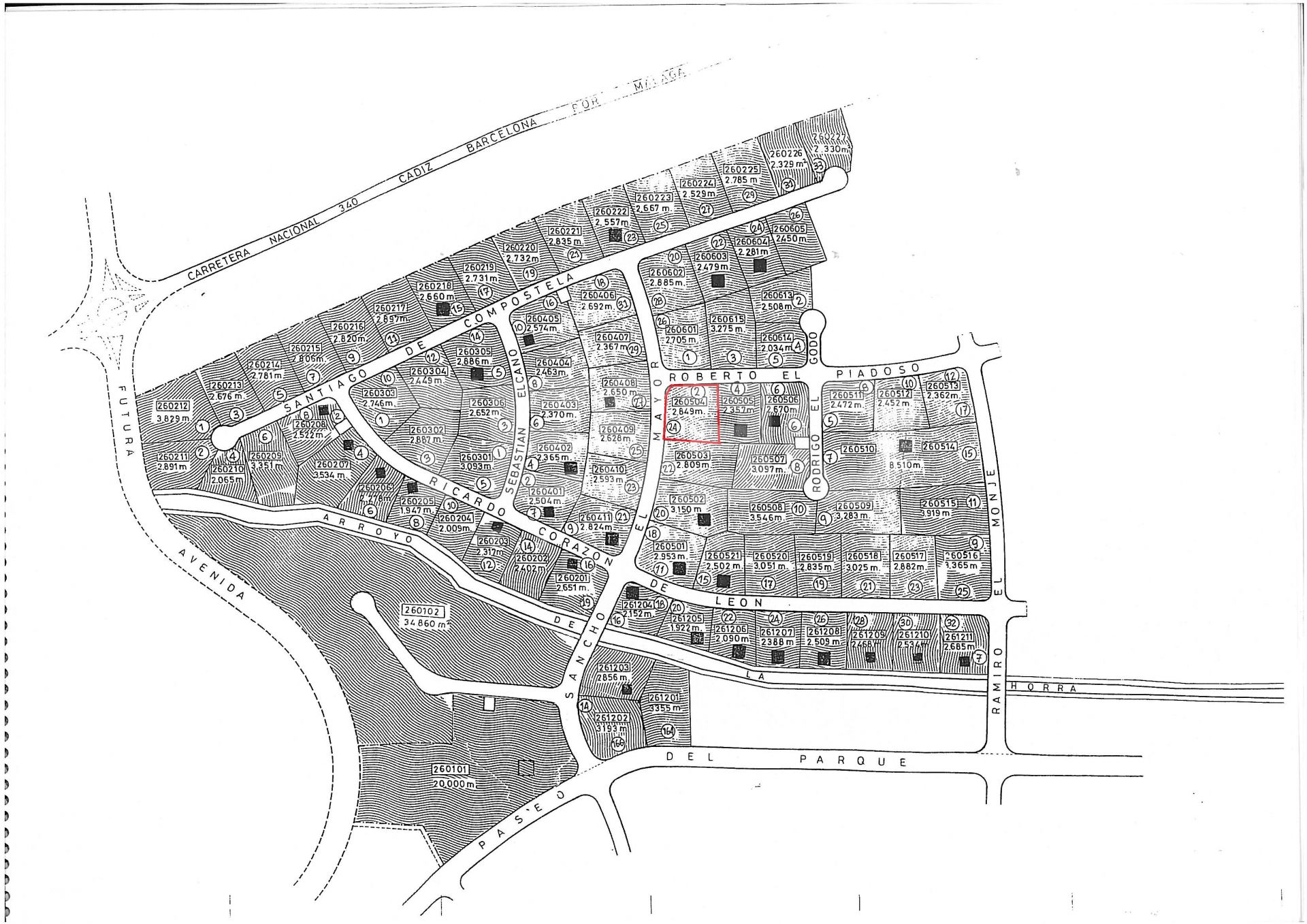 Dieses Eckgrundstück verfügt über eine Fläche von 2.849 m² und genießt eine privilegierte Lage in einer der besten Straßen der Urbanisation, konkret in der Straße Roberto el Piadoso, die sich durch ihre Konsolidierung und hohe Sicherheit auszeichnet.