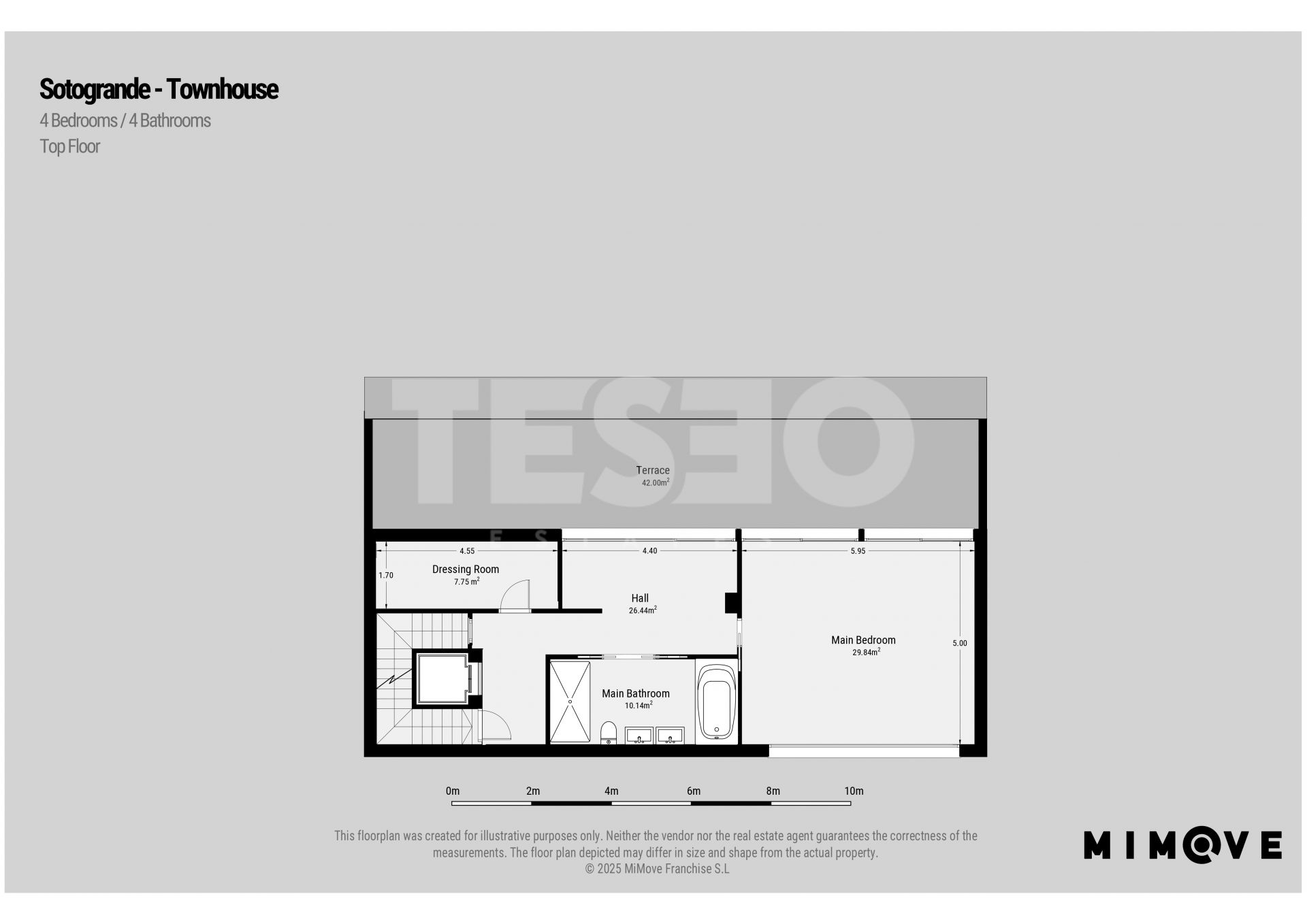 - The second floor is entirely dedicated to the master suite, with its own bathroom, dressing room, and passage area.