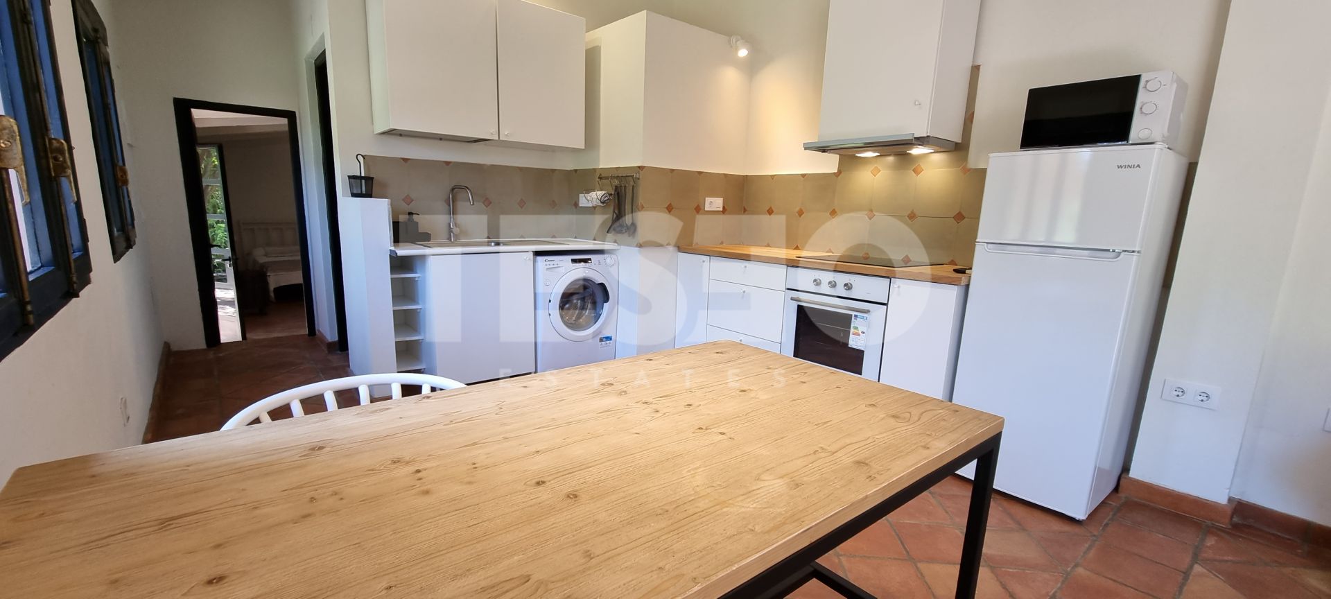 Charming hacienda-style cottage and cabin with swimming pool situated near an ancient aqueduct that runs along the Hozgarganta River, just minutes from the picturesque "Pueblo Blanco" of Jimena de la Frontera.The house was designed by a well known American architect and built to a demanding specification in the early eighties and has triple cavity walls & solid foundations. It is built on two floors with a covered upper terrace and combines real elegance with country charm.
