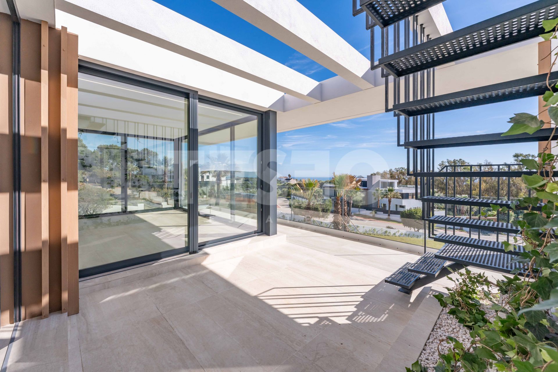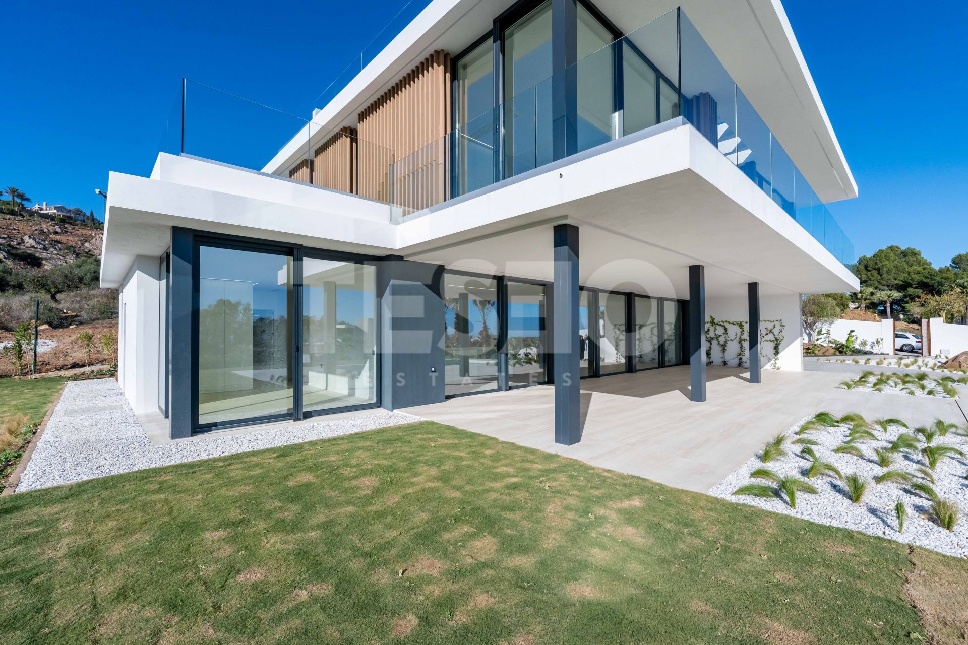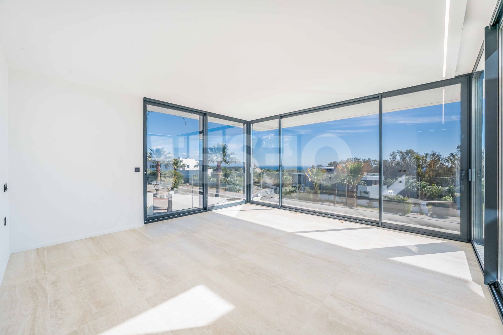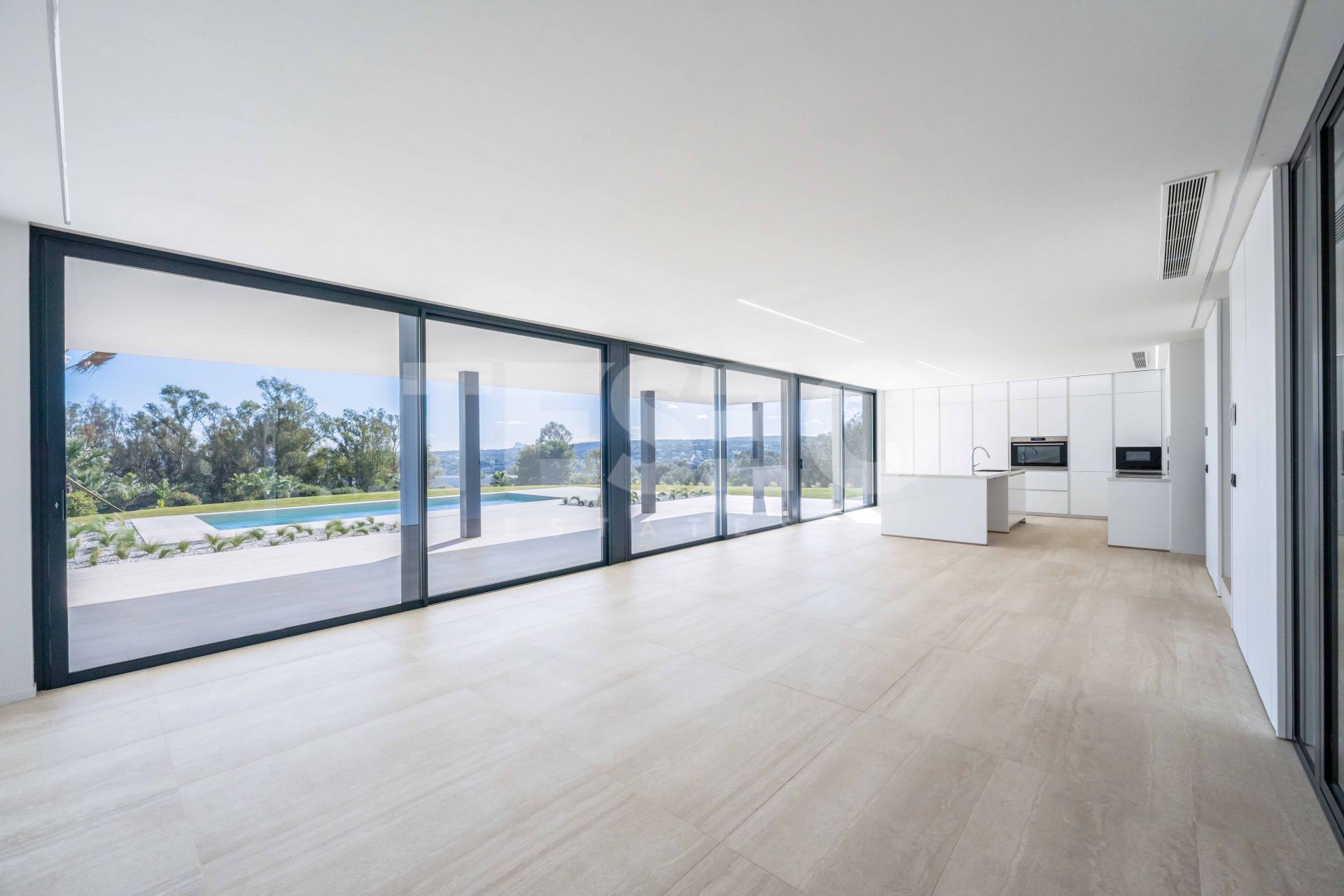Villa Ebony is another creation by renowned architect Max Lago. It is a magnificent villa located in the upper part of La Reserva, one of the most prestigious areas of Sotogrande, Cádiz. This newly built property stands out for its modern and elegant design, offering an exclusive and secure environment within an internationally renowned golf resort. With a built area of 562 m² on a generous plot of 2,305 m², the home provides spaciousness and privacy in a privileged setting, with stunning panoramic views of the sea and the golf course.