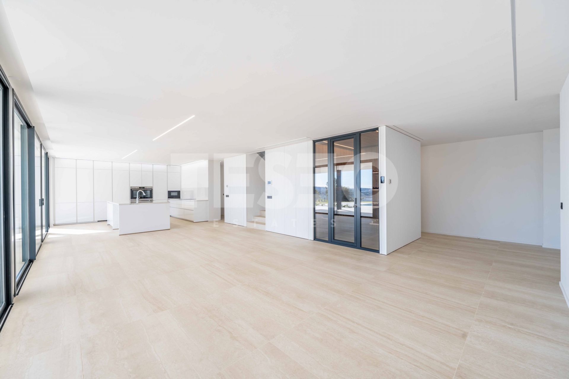 The villa features five bedrooms and five full bathrooms, as well as a guest powder room, ensuring maximum comfort and functionality for large families or those who enjoy entertaining guests. The interior is characterized by high-quality finishes, such as porcelain floors, built-in wardrobes, and a fully equipped kitchen, ideal for culinary enthusiasts. The living room and common areas open onto both covered and uncovered terraces, allowing you to enjoy the Mediterranean climate all year round.
