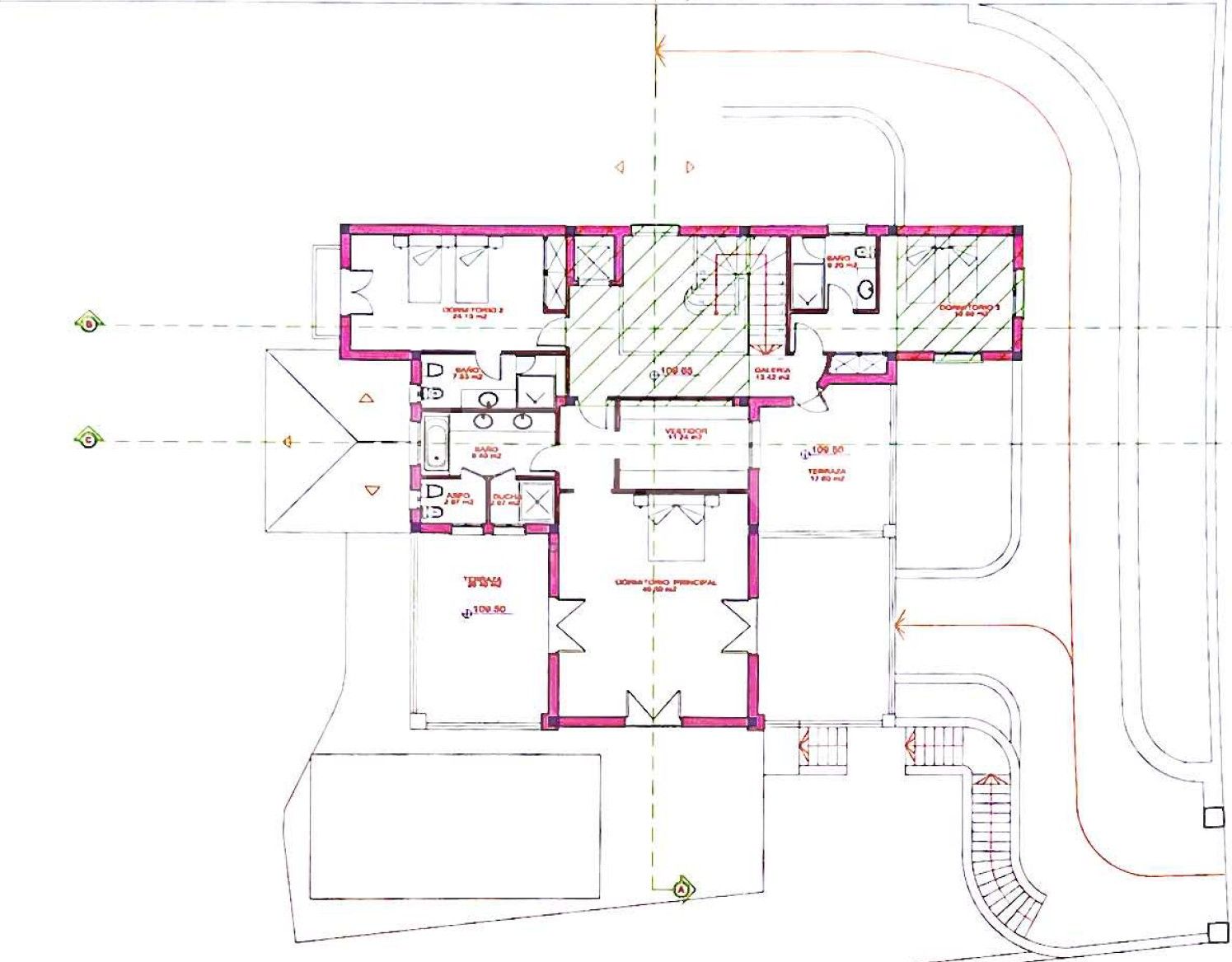 On the upper floor is the large ensuite master bedroom with terrace and contiguous dressing room. There are also 2 more rooms with bathroom and terrace, which are currently used as guest rooms and office.