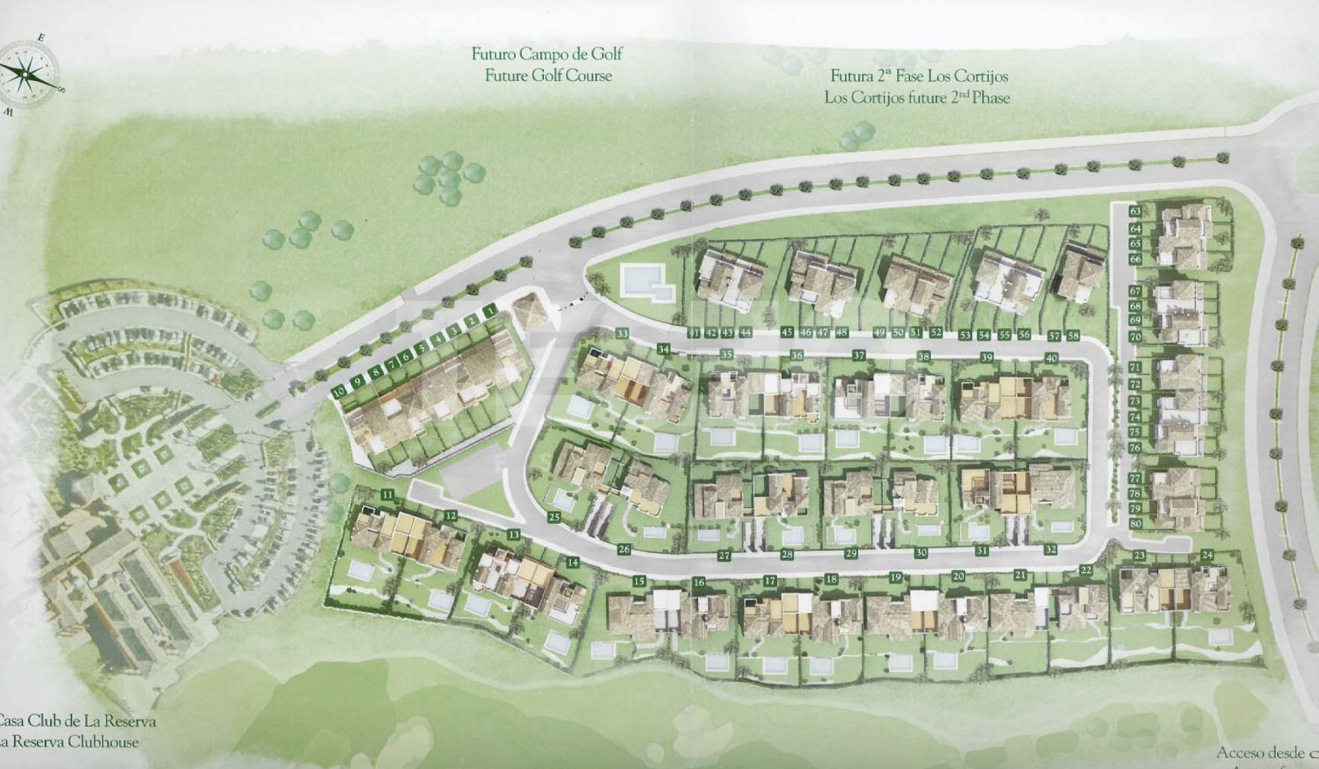 La urbanización Los Cortijos de la Reserva se encuentra junto al exclusivo Club de Golf, Playa, Pádel y Tenis La Reserva, y ha sido construida en estilo tradicional andaluz, similar a un pequeño pueblo morisco. Se encuentra en una urbanización privada, con acceso controlado y seguridad 24 horas. En esta zona elevada de Sotogrande Alto, Los Cortijos de la Reserva disfruta de vistas panorámicas a Gibraltar, Puerto Sotogrande, la montaña de Estepona, el Mediterráneo y África.