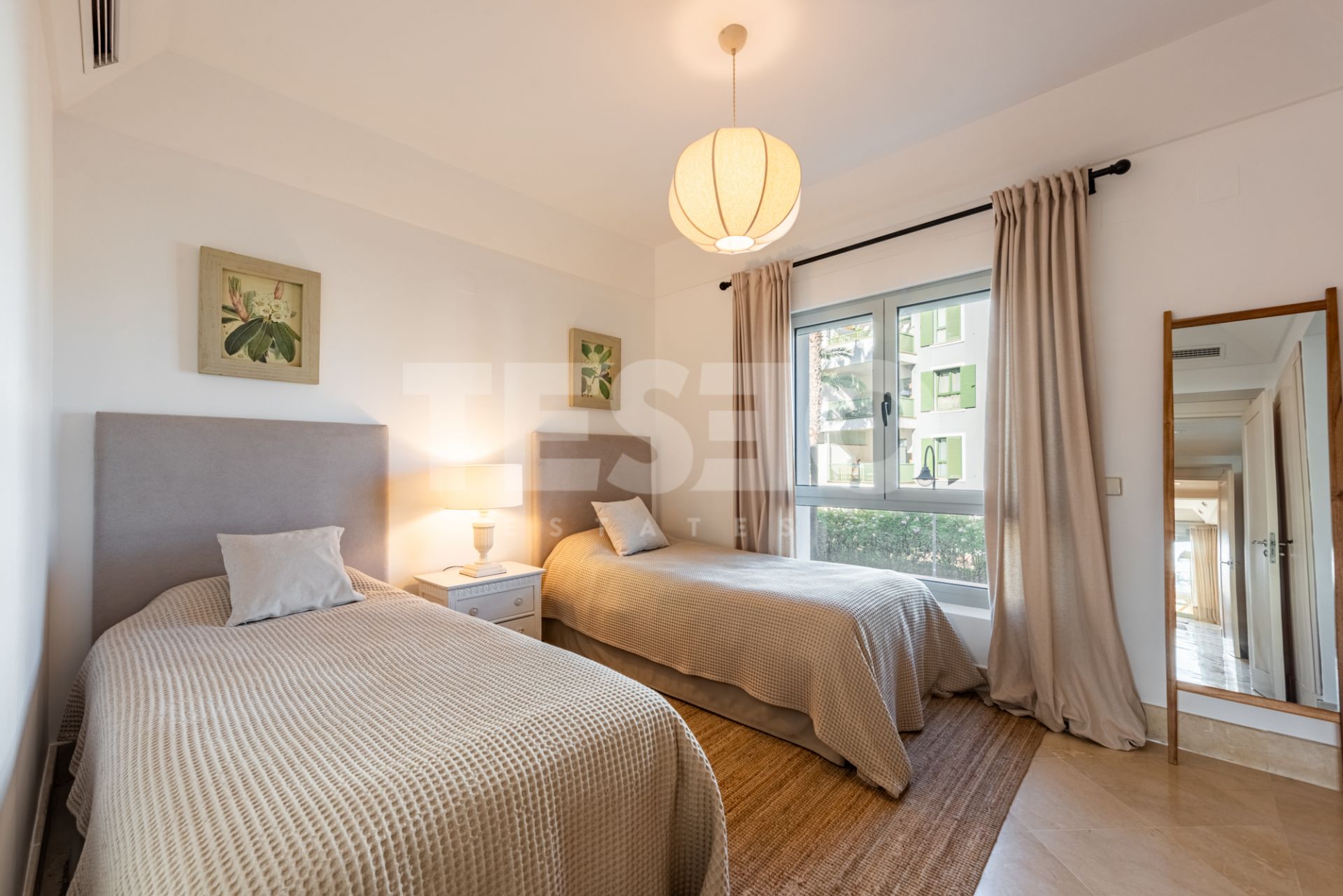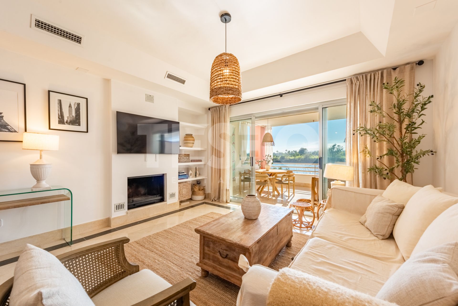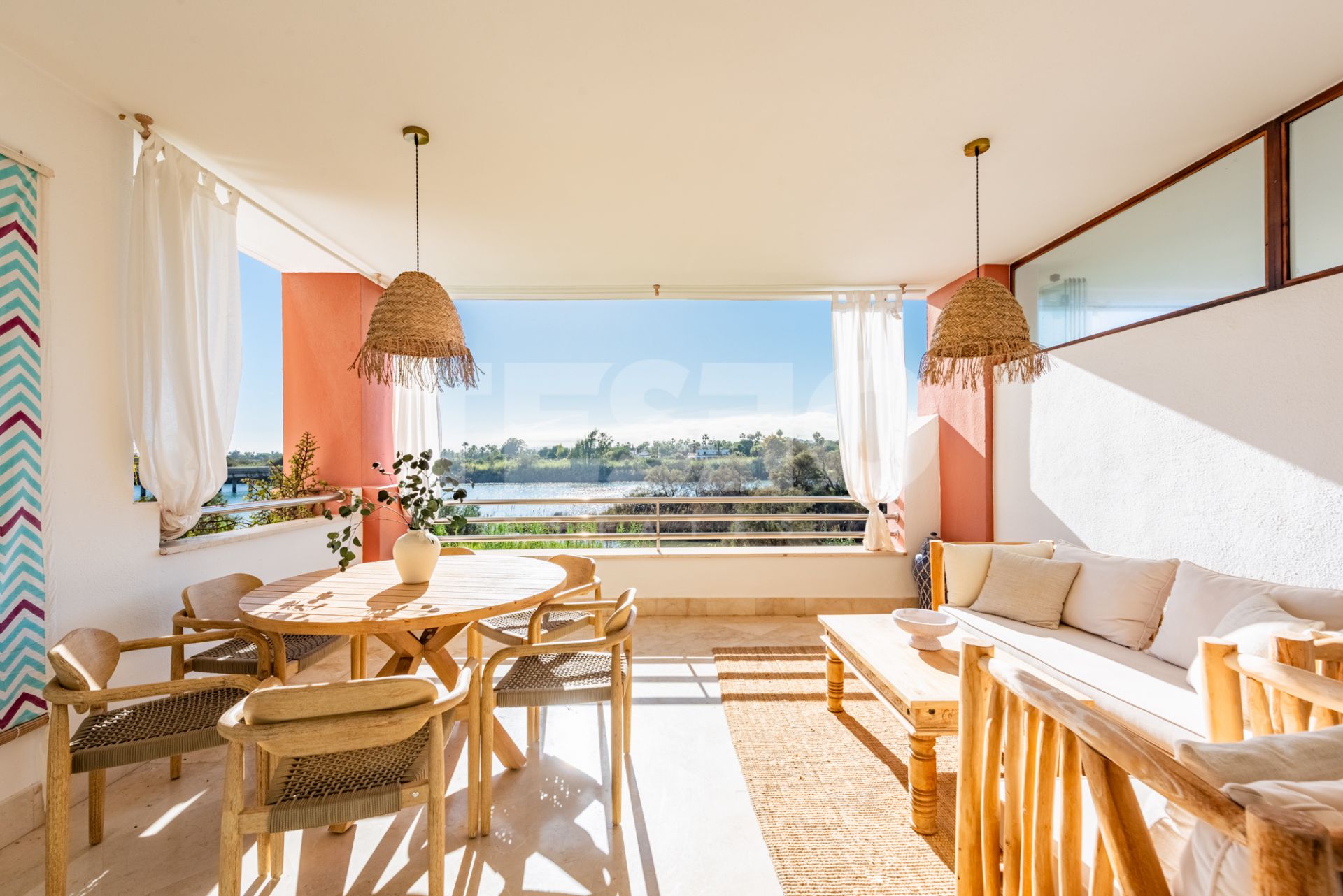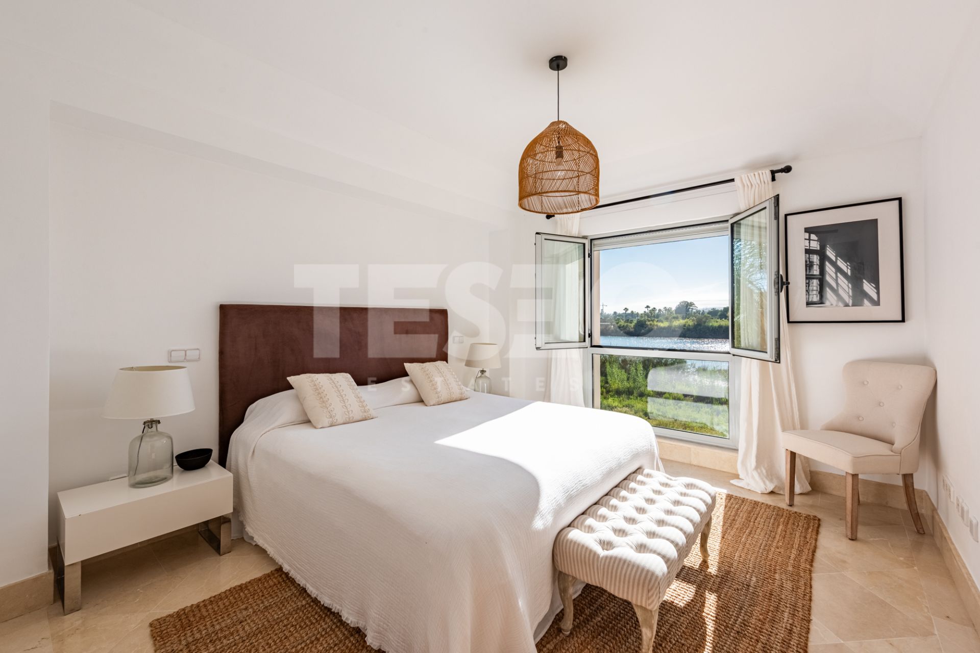 Apartamento situado en Ribera de la Tenca, en una segunda planta con vistas totalmente abiertas al rio Guadiaro, al mar, a Gibraltar y a la marina de Sotogrande.