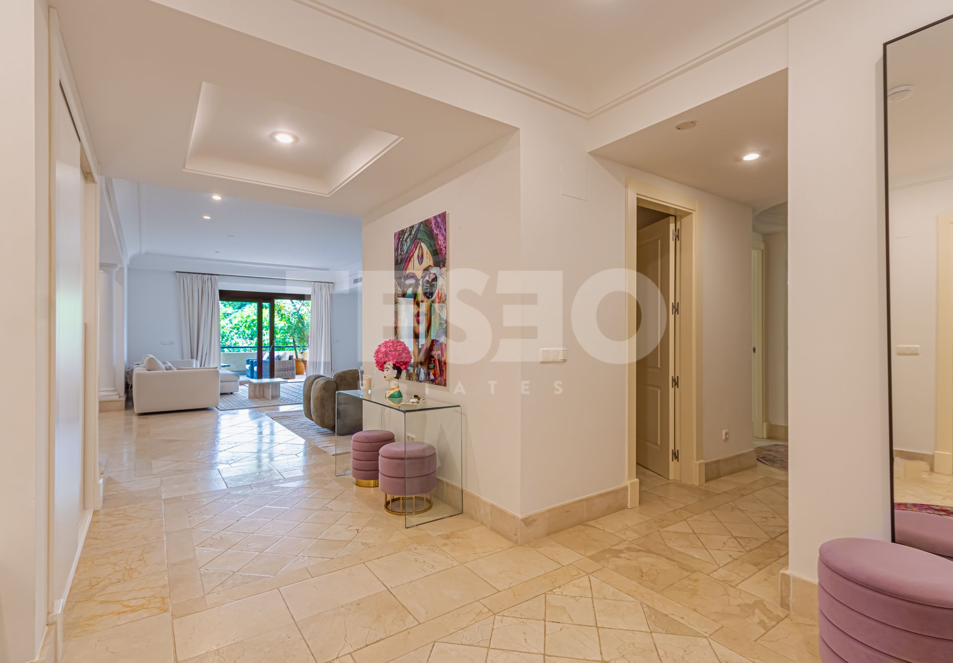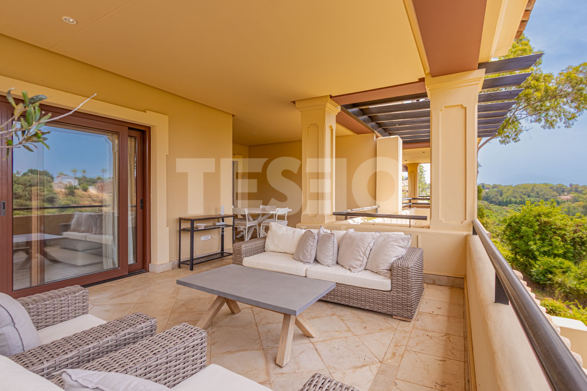 Este elegante apartamento se encuentra en la prestigiosa urbanización de Valgrande, en Sotogrande Alto, Cádiz, una de las zonas residenciales más exclusivas de la Costa del Sol. La propiedad destaca por su amplitud, con una superficie construida de 344 m², de los cuales 221 m² corresponden al interior y 58 m² a una generosa terraza cubierta con vistas panorámicas al jardín.