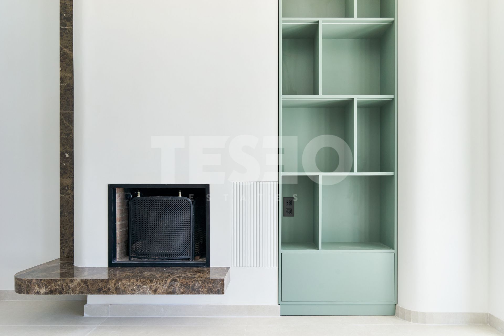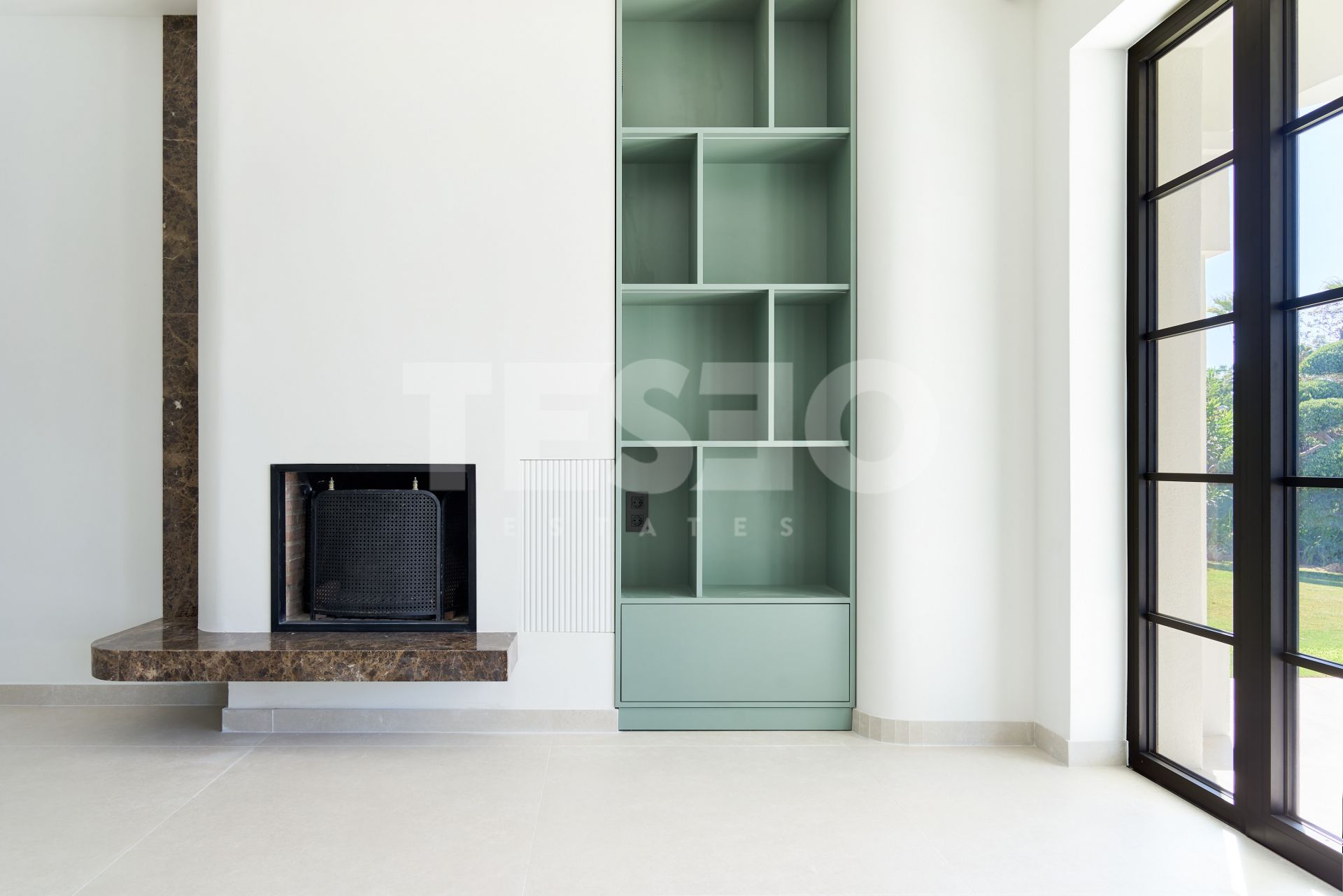 • Una chimenea revestida de mármol añade calidez y elegancia al salón.