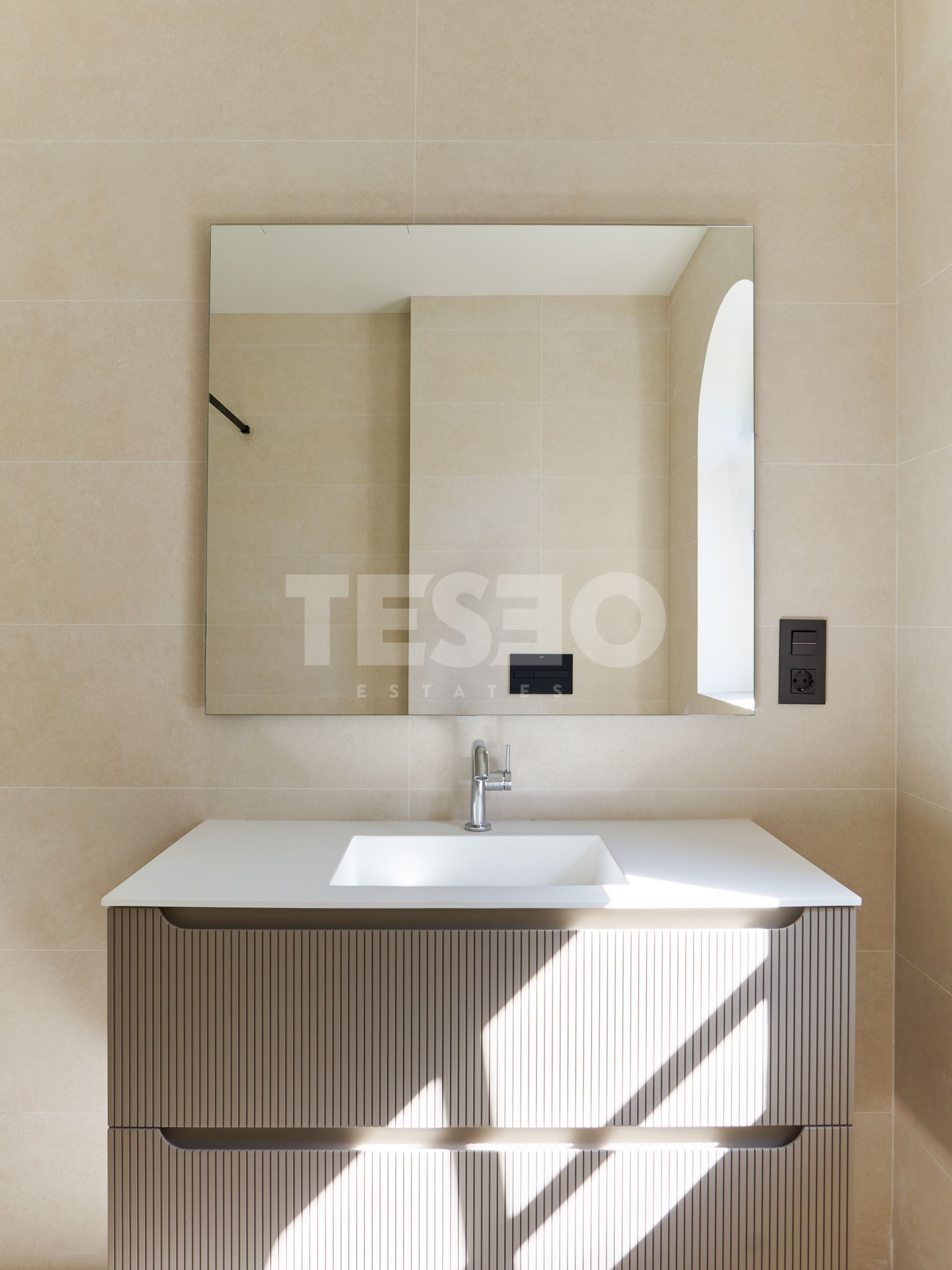Todos los baños están equipados con sanitarios Hansgrohe y suelos radiantes eléctricos, garantizando el máximo confort en cualquier época del año.