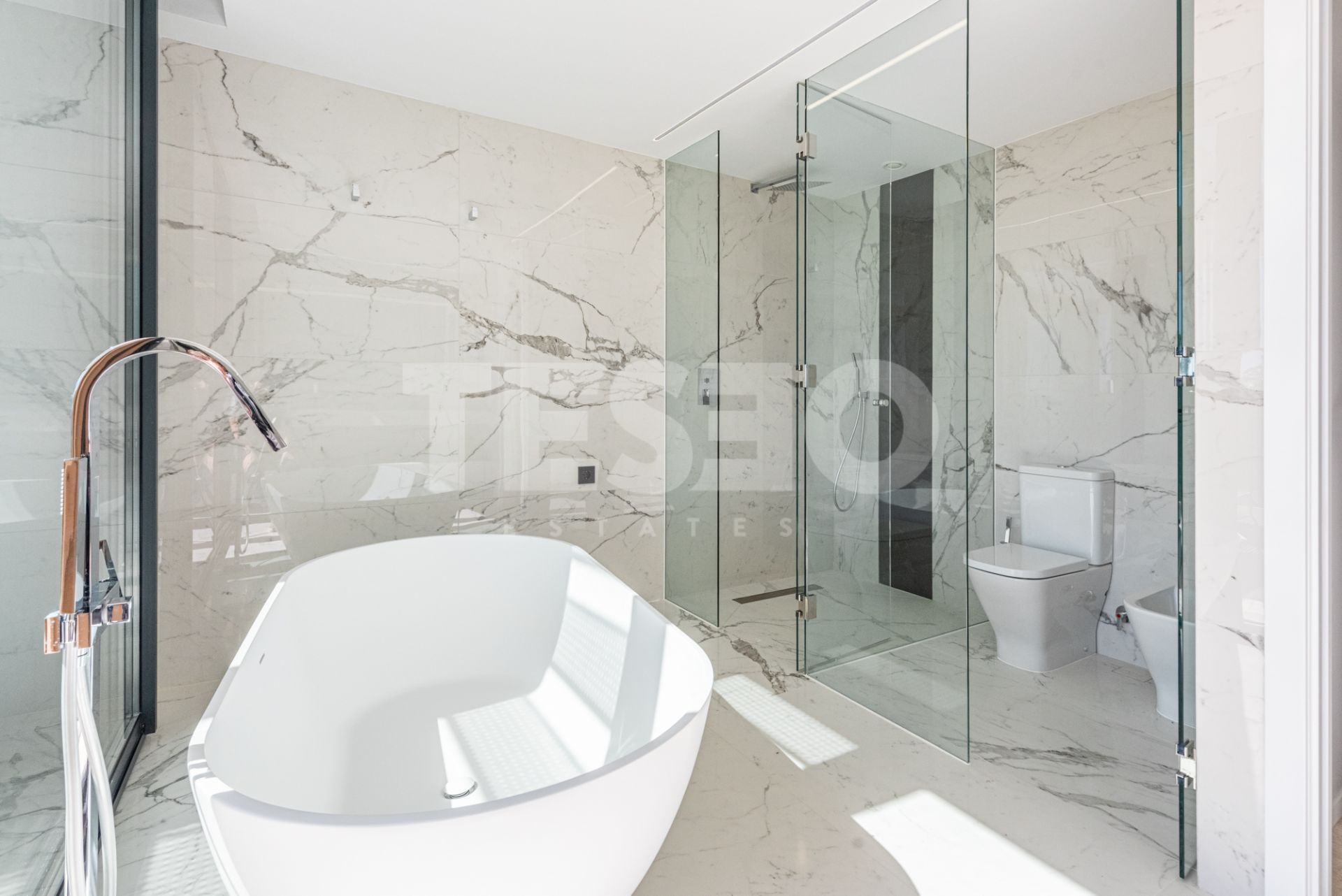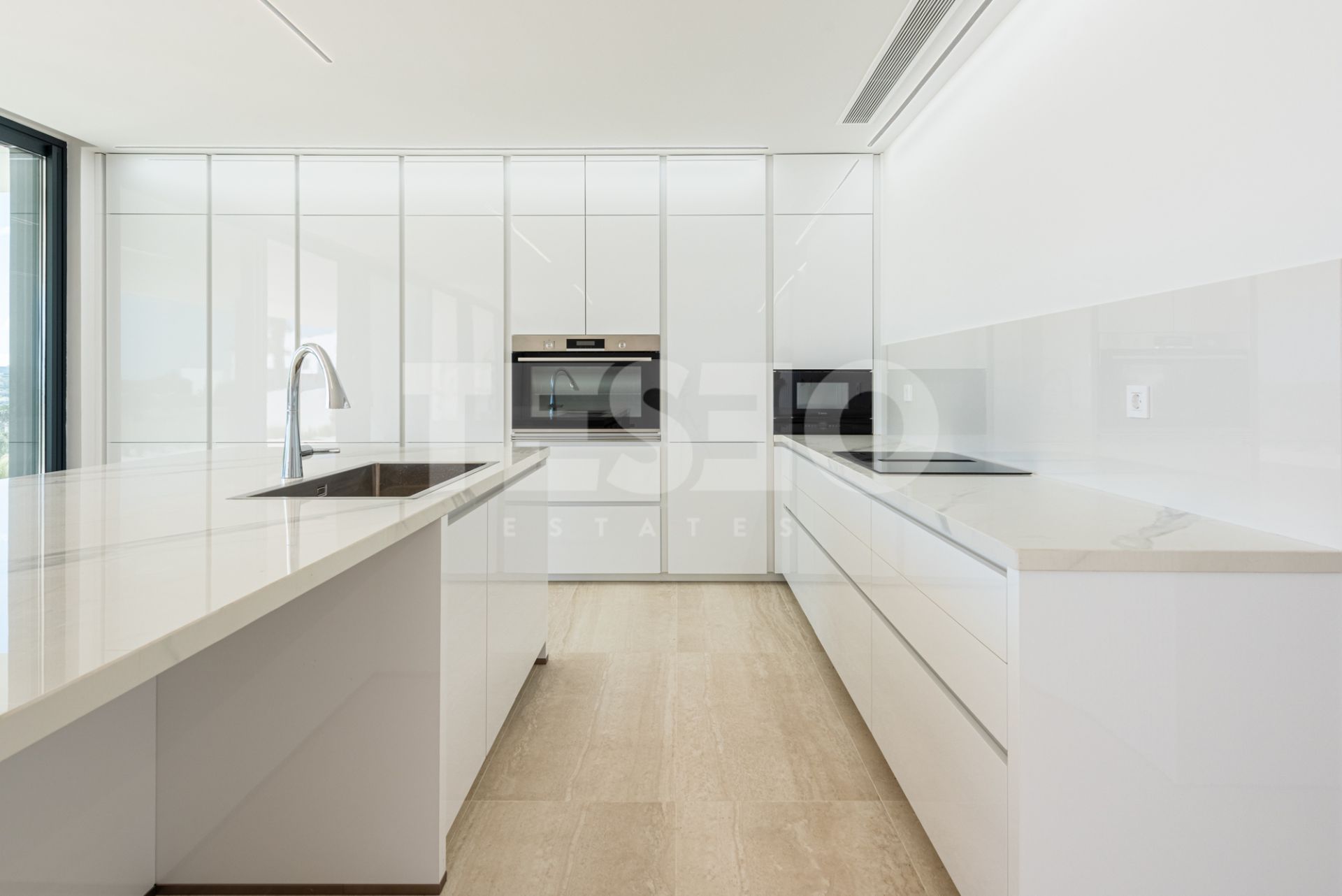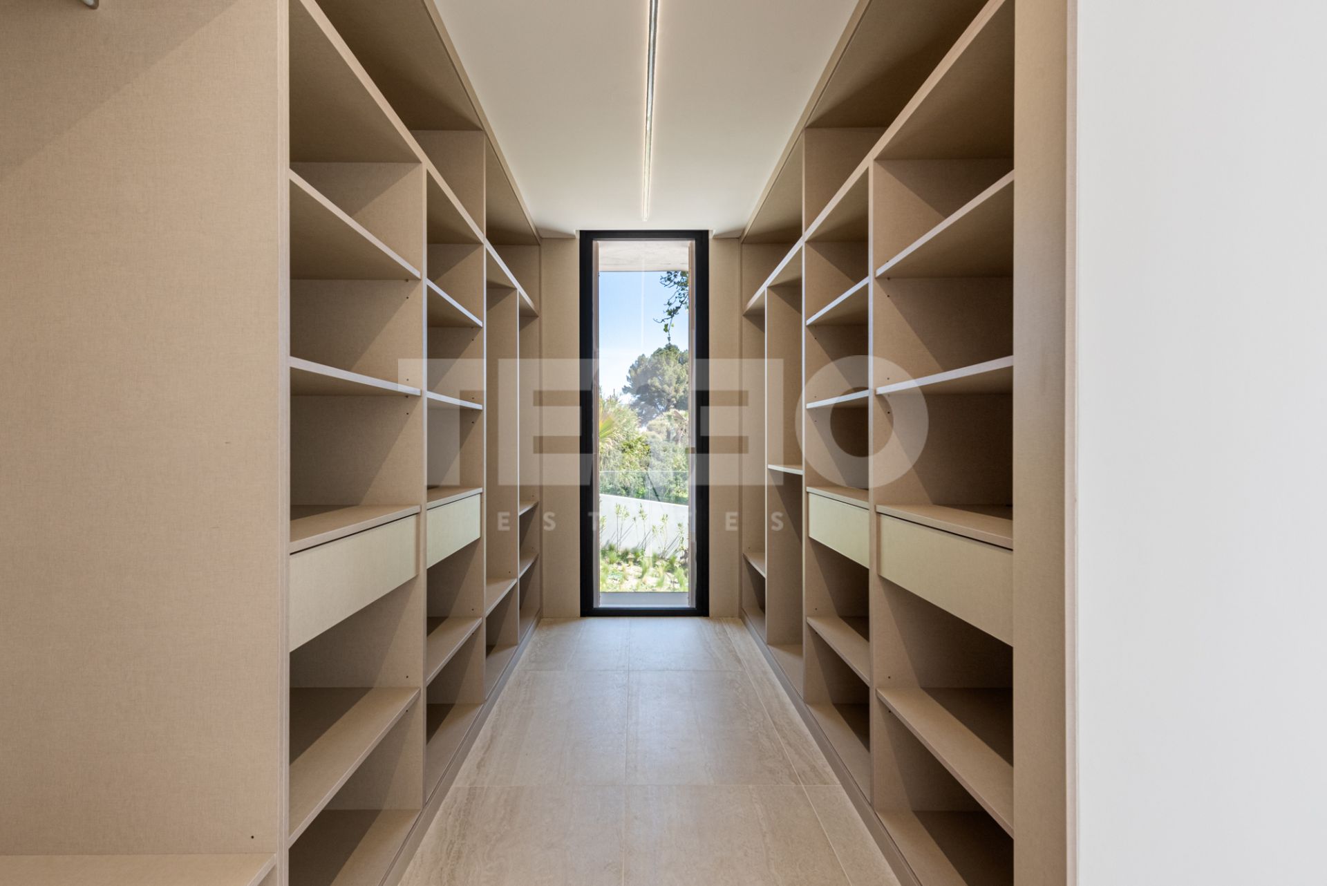 La villa dispose de cinq chambres et de cinq salles de bains complètes, ainsi que d'un cabinet de toilette pour les invités, garantissant un confort et une fonctionnalité maximum pour les familles nombreuses ou ceux qui aiment recevoir. L'intérieur se caractérise par des finitions de haute qualité, telles que des sols en porcelaine, des armoires encastrées et une cuisine entièrement équipée, idéale pour les amateurs de gastronomie. Le salon et les espaces communs s'ouvrent sur des terrasses couvertes et découvertes, permettant de profiter du climat méditerranéen toute l'année.