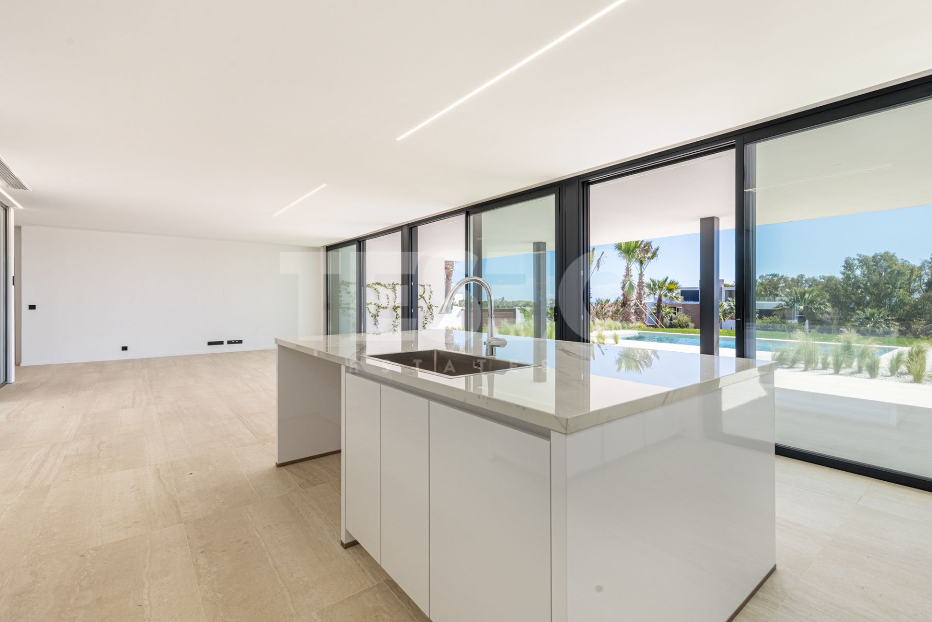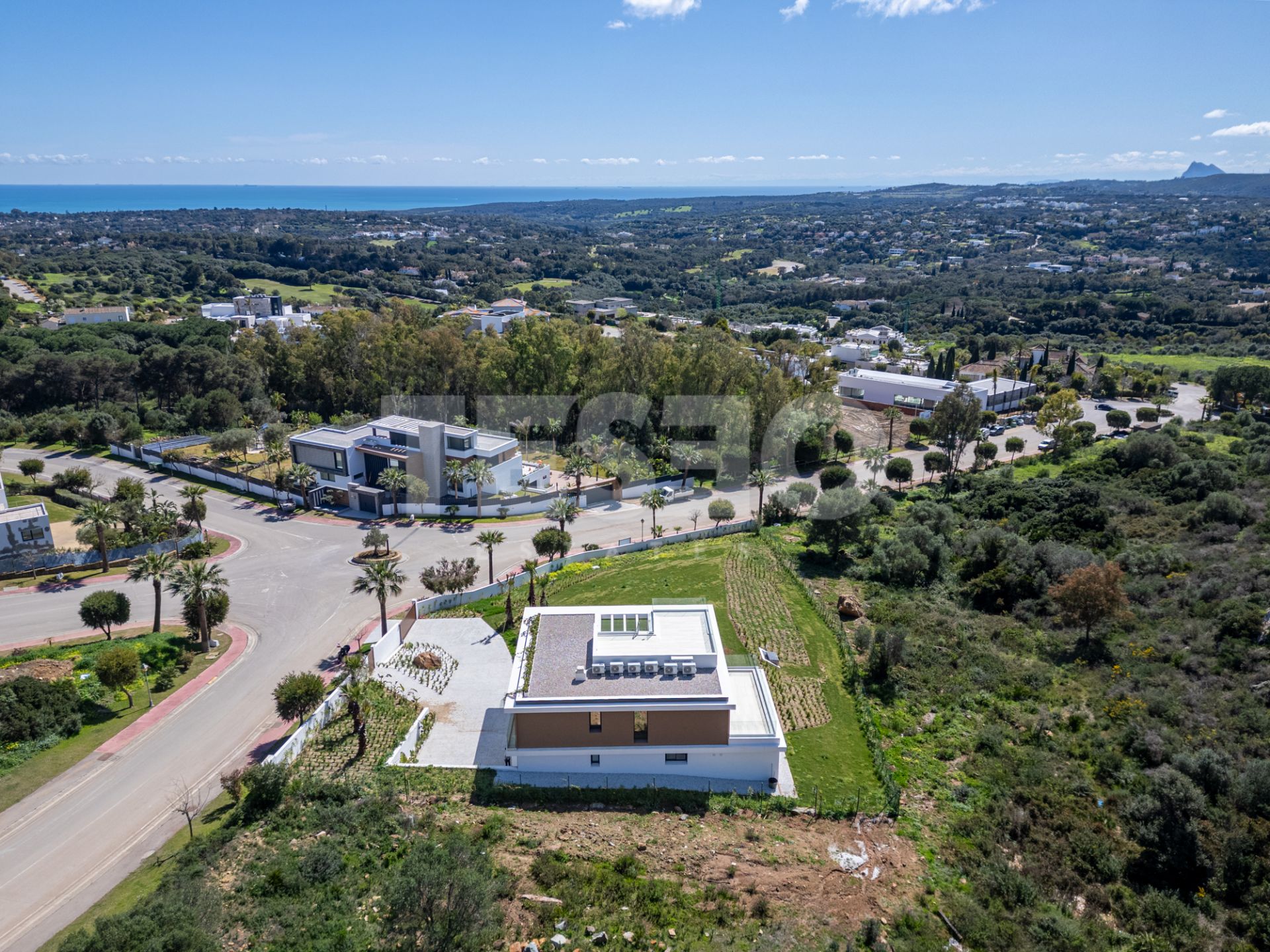 Cette propriété récemment construite se distingue par son design moderne et élégant, offrant un environnement exclusif et sécurisé au sein d'un complexe de golf de renommée internationale. Avec une surface construite de 562 m² sur un généreux terrain de 2 305 m², la maison offre espace et intimité dans un cadre privilégié, avec des vues panoramiques impressionnantes sur la mer et le parcours de golf.