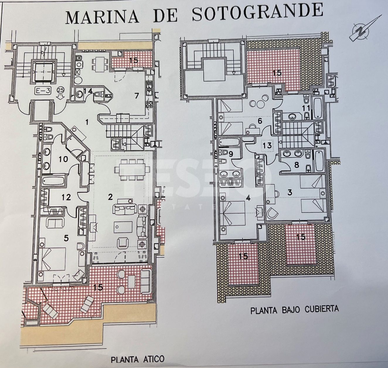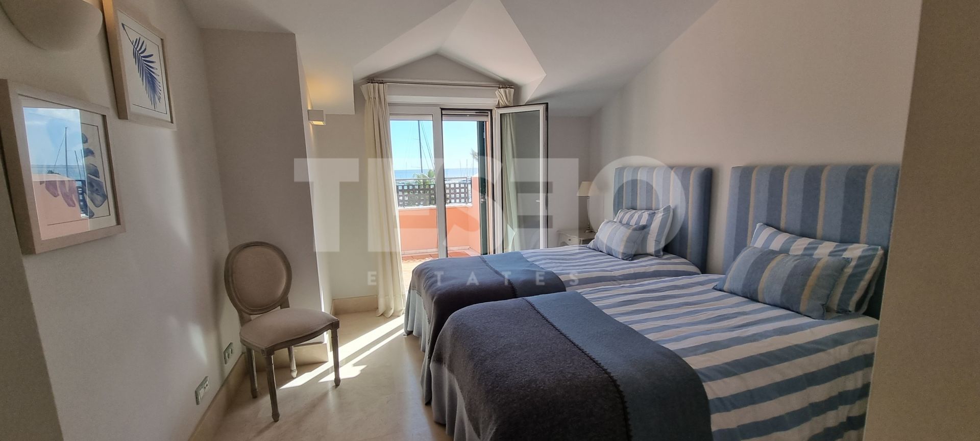 Parmi les caractéristiques supplémentaires figurent la climatisation, une buanderie pratique, des terrasses couvertes et découvertes, ainsi qu'un service de sécurité 24h/24, offrant tranquillité et confort à tout moment. Le logement dispose d'un garage privé, un élément essentiel dans une zone aussi exclusive et proche à la fois de la plage et du port. L'orientation et la distribution du penthouse permettent de profiter d'une abondante lumière naturelle et de vues privilégiées sur la mer et la marina depuis différentes pièces.