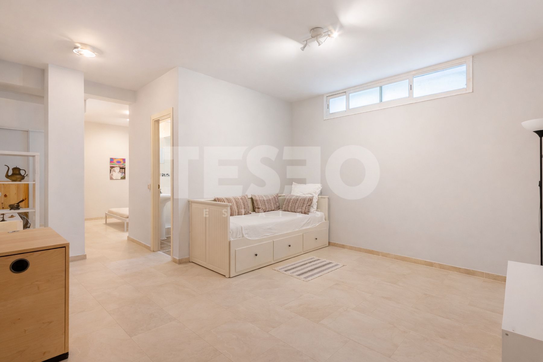 There are 2 bedrooms with 2 en suite bathrooms on this level, one that leads onto the terrace. The lower level has a large space with a double bed and also a sofa bed. There is a bathroom. This could be used as 2 un separated bedrooms or 1 large bedroom.